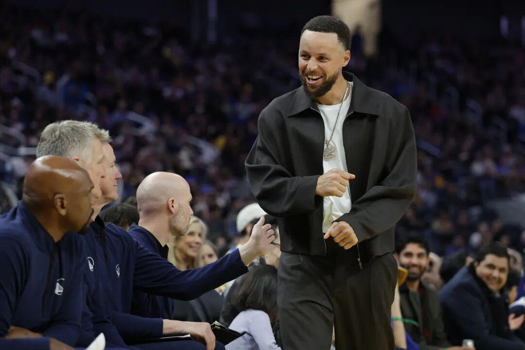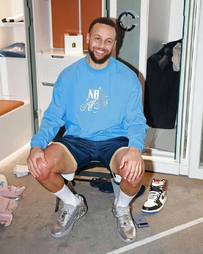 全明星前勇士对湖人的比赛中,库里几乎整场都站在替补席为队友加油。