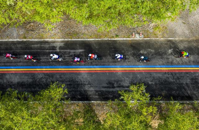 9月12日,选手们在比赛中(无人机照片)。新华社记者 姜帆 摄